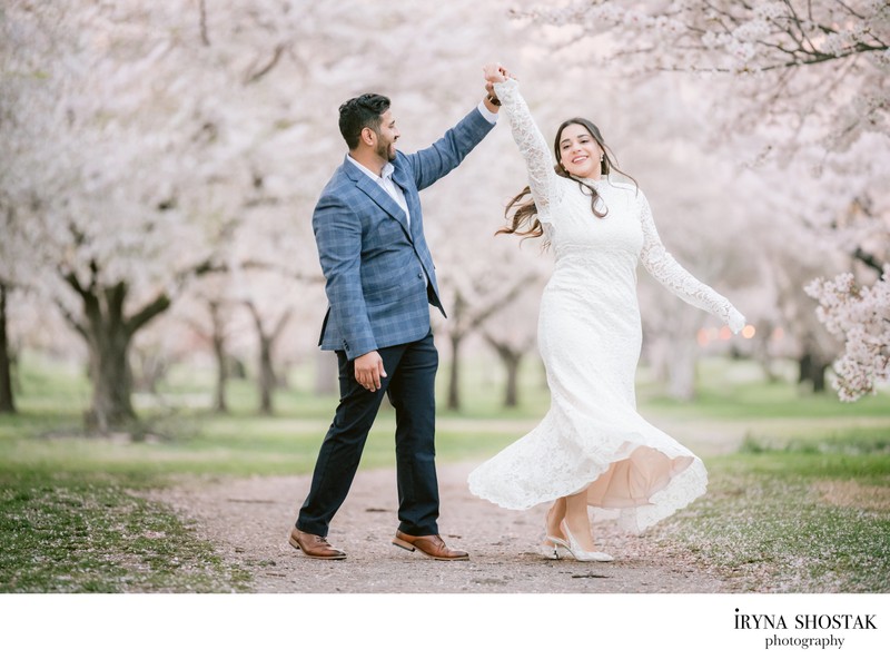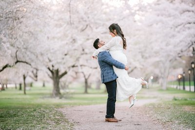 Cherry blossom season in Philadelphia typically happens between late March and early April, depending on weather conditions. Because the bloom only lasts about 1–2 weeks, these sessions are in high demand and require flexible scheduling.