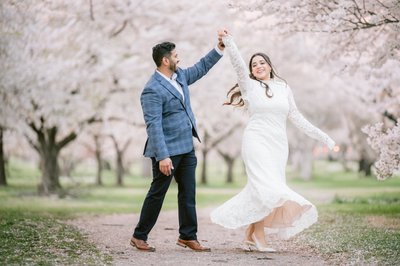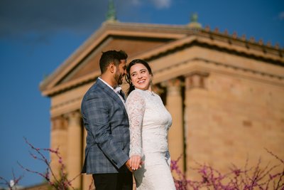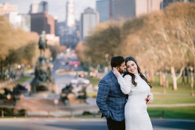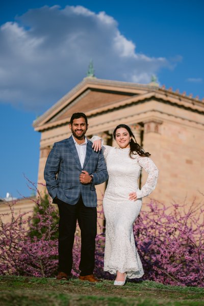 An engagement session at the Philadelphia Museum of Art during cherry blossom season offers one of the most iconic and visually stunning backdrops in the city. With soft pink blooms, timeless architecture, and golden sunset light, this location creates engagement photos that feel editorial, emotional, and truly unforgettable.