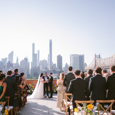 The venue’s rooftop allows couples to exchange vows against the backdrop of the Empire State Building and the sparkling New York City skyline, creating iconic wedding portraits.