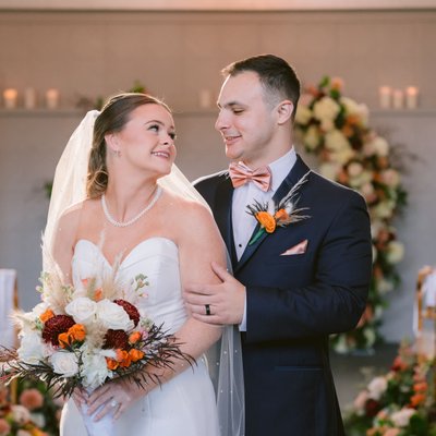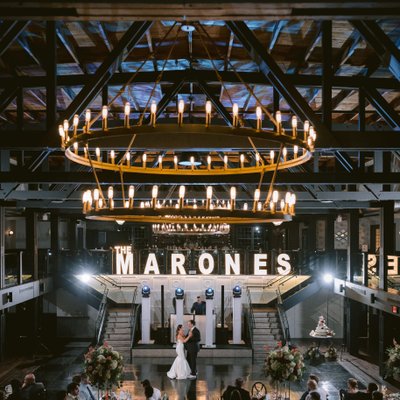 Grand architectural portraits using the venue’s sweeping industrial interior