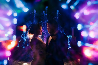 The Camelot Ballroom offers many of the same features as the Grand Ballroom; however, couples love to have their grand entrance down the gorgeous staircase. Once inside, the intimate dancefloor is lit up by multiple crystal chandeliers and the lighting color of choice. There are also private suites for the couples and their wedding party to utilize for touch-ups or getting ready. The onsite catering staff works with couples to create custom menus of incredible cuisine to create a perfect reception experience.