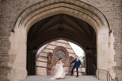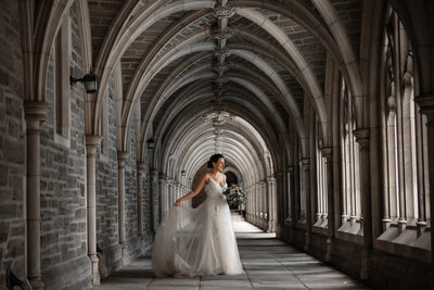 The ideal location of the Princeton Nassau Inn in the center of Palmer Square means there are endless unique and interesting backdrops for creating fun and inspired bridal portraiture. From the eclectic shop fronts, the theaters and museums, or just the hustle and bustle of the urban streets full of historic architecture, there are countless spots to create stunning portraits. Princeton University is right next to it and can offer endless opportunities for timeless portraits with Gothic architecture as a background.