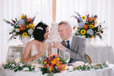 Friends and family are greeted in style as butlers are on hand to pass out champagne and Perrier, followed by white-glove service and passed hors d’oeuvres. This is followed by a three-course meal of outstanding cuisine with wine poured tableside. Each menu is fully customized to meet the dietary or cultural needs of any couple or guest, complete with Kosher options for adults and children.
