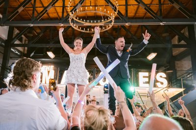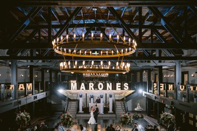 Grand architectural portraits using the venue’s sweeping industrial interior