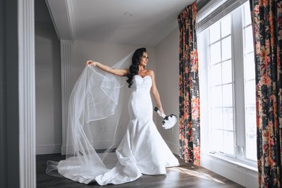 Bespoke garden, which can be tented to protect against any weather, and set against blue skies, it’s a truly charming spot to say “I do”. I love the reflection in the water and using the bridge to create some inspired romantics of the wedding couple. From the arched doorways of the hotel, the brick pathways, and the beautiful, natural flowers which bloom in different colors year-round, the Renault is truly an ideal place for your New Jersey wedding.