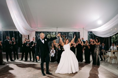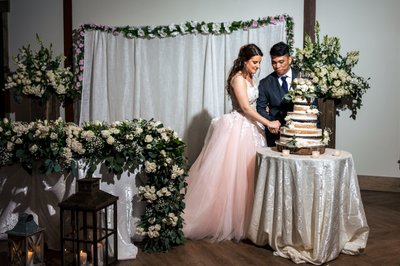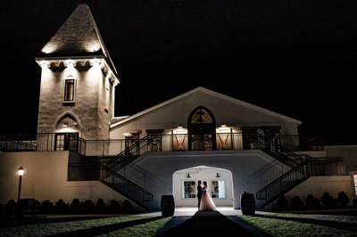 This rustic winery doesn’t skimp on elegant design or romance. In the large ballroom, a stunning crystal chandelier hanging over the dancefloor in this stately reception space sets the perfect stage for your first dance. The warm, white canvas of the room allows couples to easily personalize the room with their wedding day aesthetic. Tables surround the large dancefloor giving guests the perfect view of the revelry or dancing and toasts. While at the Vineyard Ballroom the industrial chic of the wrought irons crossing the ceiling lit up by candelabras sets a totally different, yet stunning, vibe.