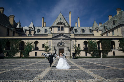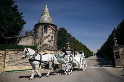 To complete the fairy tale story, you can even elect to arrive at your wedding by a horse-drawn carriage by a stately white horse! If you’re considering a wedding at Oheka Castle, I urge you to book as soon as it is popular and books quickly. They also work with a preferred wedding vendor list as they are careful to vet people who take their careers seriously and treat the property with respect. I’m so proud to be one of those vendors, as I truly feel Oheka Castle is a jewel!