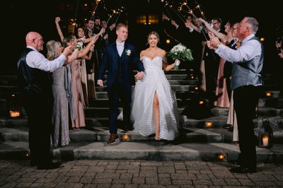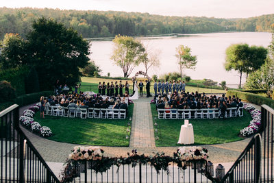 The newly remodeled lakefront Ballroom offers couples 5,000 square feet of modern elegance with gooseneck lighting and fabulous Murano glass chandeliers that hang from the 27-foot draped, vaulted ceilings and expansive windows providing guests with magnificent views. A borderless, expansive dancefloor, which can be lit up to suit your custom design, welcomes your guests and gets the party rolling after guests enjoy a custom menu, expertly created and served. The intriguing copper bar and customized millwork adorn the interior and add to the rustic vibe of The Lake House Inn. The carefully selected décor lead out onto the sprawling 1,000 square foot cobbled terrace, which is home to a private fire pit, where family and friends can enjoy unparalleled views of the moonlight cascading across the water.