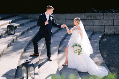 Two keys to photographic creativity are texture and light, and Lake House Inn is brimming with both. Having won the AIA Award for Excellence in Architecture and Design, the face of the Inn features stone masonry, timber, and stucco, providing a myriad of gorgeous colors and details like small alcoves, which are perfect for posing a couple. I also love to use the balconies, the stunning, grand open stairs, and wrought-iron stairs case.