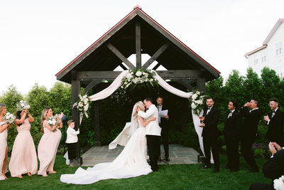 Couples can choose from saying their vows inside of America’s oldest restored barn, replete with farm chic wood beams & old-world charm, at the waterfront gazebo, or inside the private manicured garden. Each site is unique in character, lending itself well to providing stunning backdrops for formal and informal portraiture that I love. After the “I do’s” are done, guests can follow you up to the aisle and mingle in the private cocktail hour space where they will enjoy an excellent selection of Hors 'd oeuvres. From there, the party moves on to one of the ballrooms that couples can choose from at Normandy Farms.