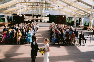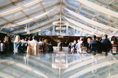 The translucent tent is a permanent structure and is beautifully designed. The vibe is definitely upscale, but it has a charming "English Garden" sort of feel, making it an excellent choice for romantic weddings or couples with a boho-chic aesthetic.