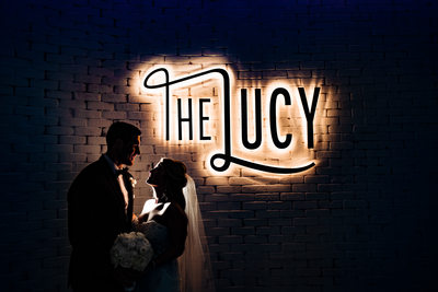 One of the best features of The Lucy is that you can have both your ceremony and your reception there. Between, guests can congregate on the second-floor Mezzanine overlooking the Grand Hall for their signature hour and a half cocktail hour. There is plenty of space for them to socialize and enjoy their top-shelf offerings while the wedding couple and bridal party take advantage of this time for photos.