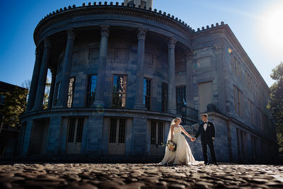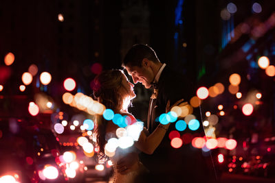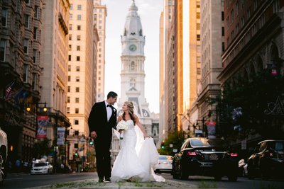 The clients that hire me love doing romantic photos together, and one of the things that I adore about this iconic venue is that you can step outside the doors of The Lucy, and it’s the perfect spot for night portraits. With having to go far, we can take advantage of city lights and Philadelphia City Hall sparkling behind us; it’s just the perfect way to end the evening.