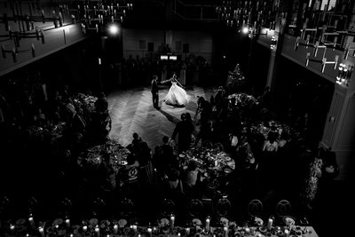 The second-floor mezzanine offers a birds-eye view that I love to use to capture a different view of the first dance as well as at the height of the party when the dance floor is filled with friends and family. It’s so unusual to find a venue that offers this view!