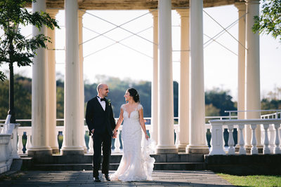 The Mill House is a versatile space able to comfortably and elegantly host your ceremony or reception. Neoclassic columns frame the space which rises above the Schuylkilll River flowing over the Fairmount Dam. Steeped in historical design and air of romance, the Mill House provides guests with outstanding views of the city and the ability to dance the night away under a starry sky. Situated on the Mill House Deck, the tenting can be custom designed with twinkle lights, flowers, or handing chandeliers allowing the space to be as unique as your wedding day vision. The Mill House Dock is a magical place for creating candid and formal wedding portraiture, and I love taking advantage of the historical architecture and spectacular views.
