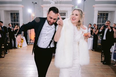 The Engine House is a slice of historical elegance in classic Philadelphia style. The hardwood floor stretches out beneath its original crystal chandelier while simple details warm the room making it ideal to host an indoor ceremony. Complete with a tented Veranda for hosting the cocktail hour that overlooks the river, friends, and family can enjoy the breathtaking view of Boathouse Row and the Center City skyline. The Engine House features chef-attended interactive stations, a raw bar, a food library, and a full-service bar. The ballroom can also host a cocktail hour.