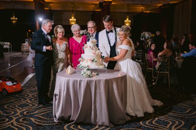 Each table is set with style, flawlessly decorated from the Chiavari chairs to the matching pressed linens, and each detail is overseen by experienced staff that is on hand to make your easier by producing a stunning and entertaining event. Dining on award-winning cuisine from the famed chefs at Finley’s Catering, wedding guests are treated to an evening of culinary brilliance while surrounded by carved columns and opulent crystal chandeliers. It all comes together in this gorgeous ballroom complementing any couple’s wedding theme.