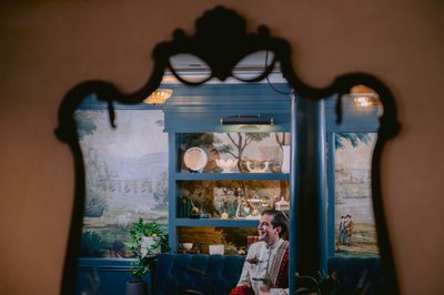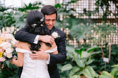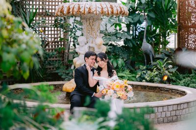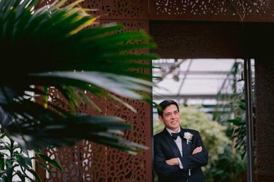 The atrium is a favorite for those who want an outdoor feel without worrying about inclement weather changing their wedding day plans. At night the view of the gardens is lovely. Night-time photos on site are always so nice; you don't have to go far from your guests and the festivities to have dramatic portraits, which I love.