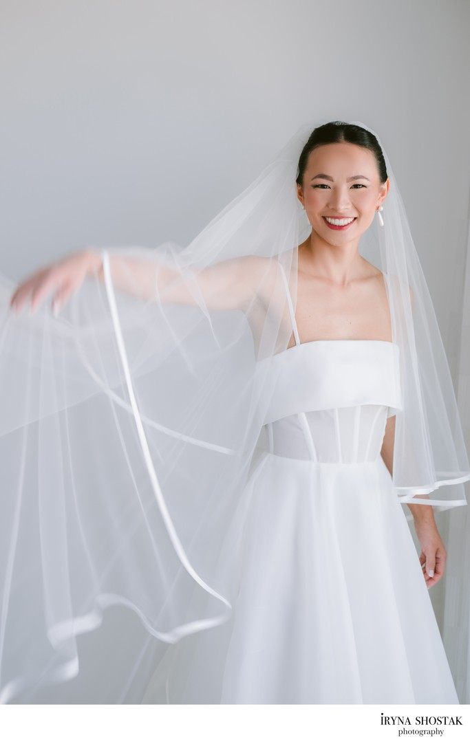Grace, light, and pure emotion—this elegant bridal portrait by Iryna Shostak Photography captures everything a luxury wedding along the Jersey Shore should feel like. As one of the leading South Jersey wedding photographers, Iryna is known for transforming quiet, intimate moments into magazine-worthy works of art. The bride’s natural smile, framed by soft daylight and flowing tulle, reflects the essence of Iryna’s style—timeless, refined, and effortlessly beautiful.